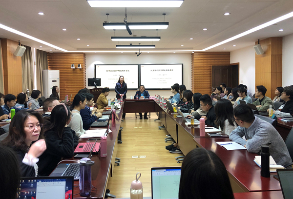 吴英姿教授主持。张卫平教授是我国民事诉讼法学领军人物,他的到来受到同学们的热烈欢迎。讲座现场座无虚席,气氛热烈。