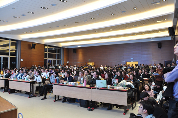 吴英姿教授主持。朱老师学术成果丰硕,报告风格幽默风趣,他的到来受到同学们的热烈欢迎。很多同学下午三点就赶到报告厅占座位,讲座现场座无虚席,过道上都挤满了或站或席地而坐的听众。