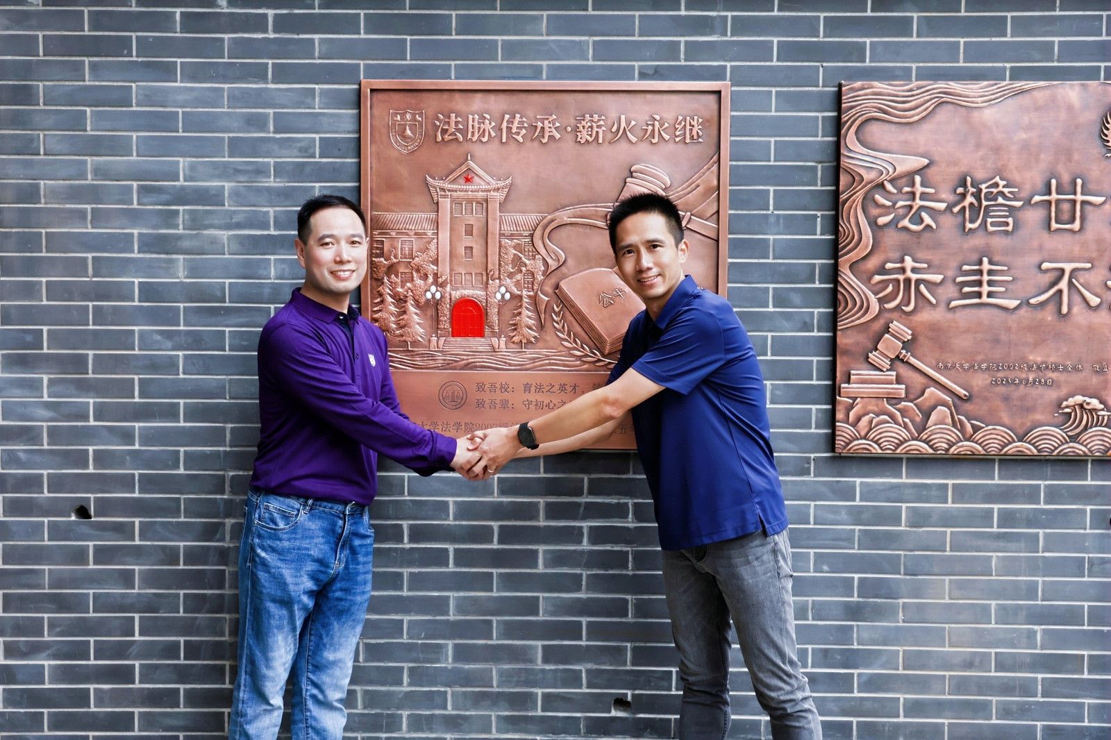 杨阳副院长与07法硕同学代表陈玉峰共同为“07法硕毕业十五周年”纪念铜牌揭幕,这块铜牌是对青葱岁月的致敬,更是对新澳彩开奖