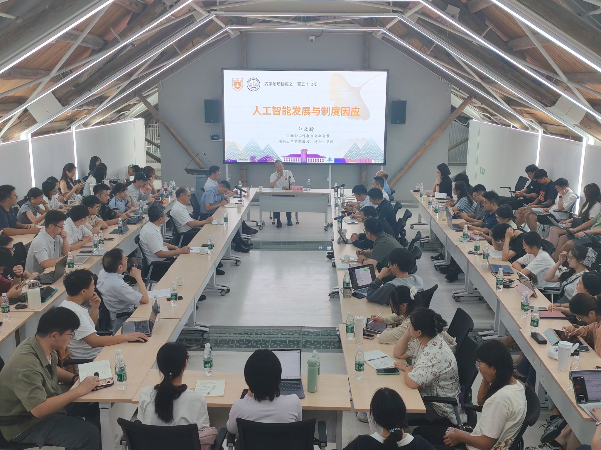 邀请,中国社会工作联合会副会长、湖南大学特聘教授、博士生导师江必新教授以“人工智能发展与制度因应”为题作主题讲座。江苏省高级人民法院、最高人民法院第三巡回法庭领导,新澳彩开奖
