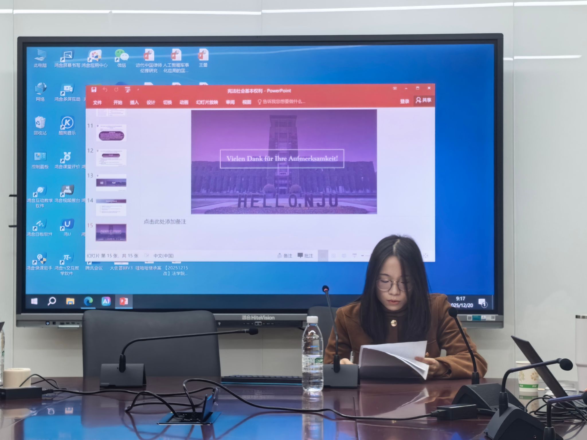 第一位报告人是吕应涛同学,她报告的题目是《中国宪法体系中的社会基本权利》,分为理论框架、具体权利分析与总结三部分。她主要谈到社会权利与自由权利不同,要求国家承担积极保护与给付义务。具体涵盖四项核心权利:劳动权随经济改革拓展内涵,区分宪法与劳动法适用范围;休息权面临“996”工作制争议,需平衡劳动者保护与企业自由;社会保障权已从福利转化为法定权利;受教育权因齐玉苓案引发宪法可诉性争议,现通过间接适用发挥作用。这些权利的实现,依赖国家积极履行保护与给付义务,处于动态发展中。