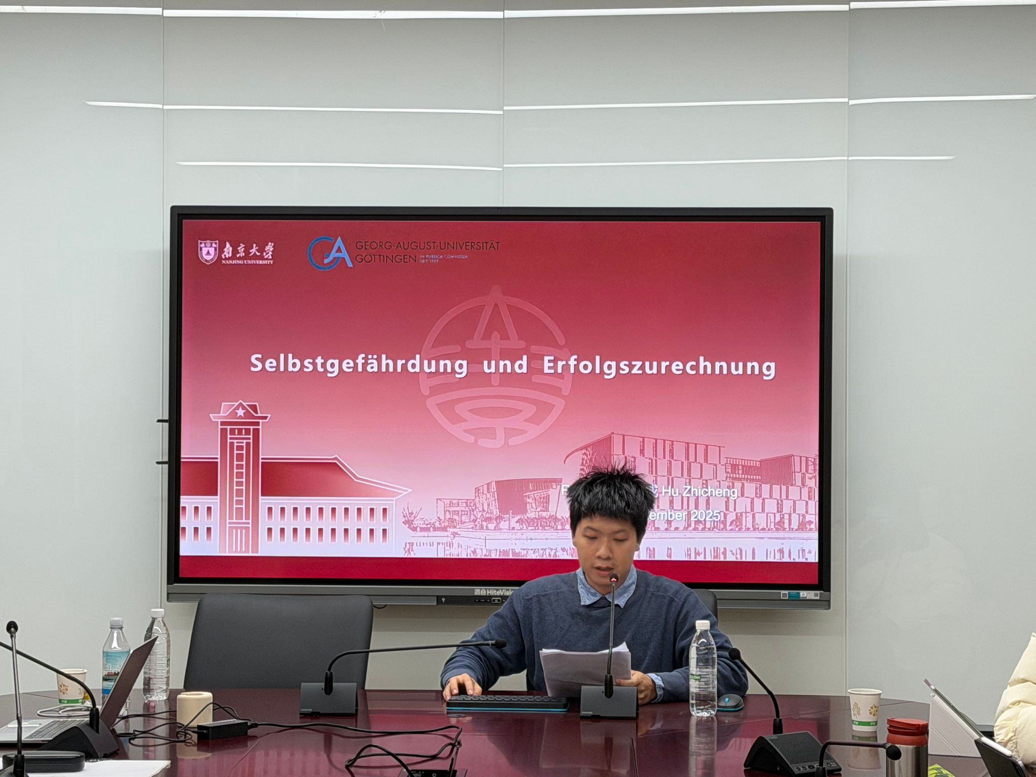 2025年12月20日,中德法学研究所第23期“中德法律比较”研讨课在南京大学鼓楼校区西南楼135会议室举行。中德法学研究所德方副所长Holger Hanisch、中方指导教师徐凌波副教授、蔡琳副教授、助理教授金健老师以及中德法学研究所的2024级研究生共同参与了本次研讨课,研讨课全程用德语进行。