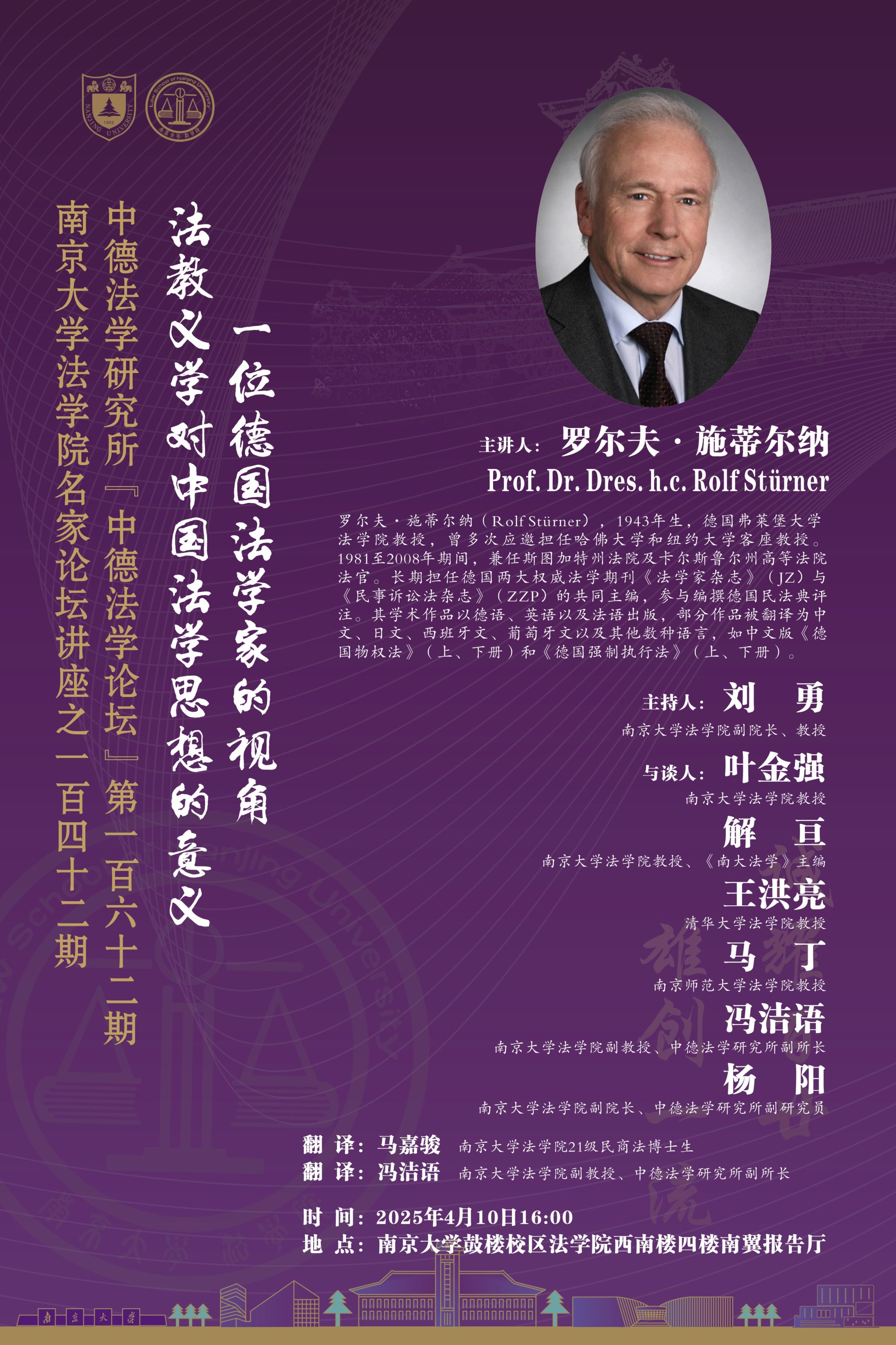 新澳彩开奖 名家论坛讲座之一百四十二期中德法学研究所“中德法学论坛” 第一百六十二期海报