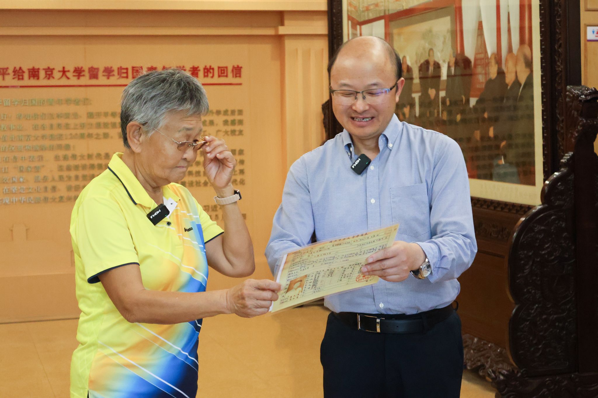 在南京大学校史博物馆,李田青收到南京大学精心准备的两份礼物,一份是李竹如就读于中央大学(南京大学前身)新澳彩开奖 政治系时的学籍表复印件,一份是记述着李竹如等47位英烈成长和革命史的《南大英烈》一书。